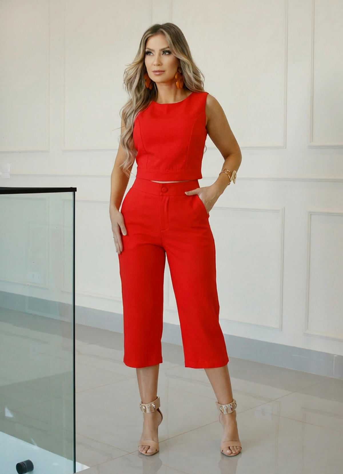 A nossa Calça Pantacour Dani é inspirada na pantalona e possui o comprimento midi entre o joelho e a canela.