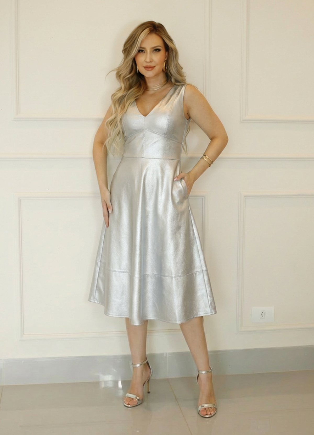 O mood perfeito entre elegância e sofisticação. Confeccionado em couro sintético premium, o Vestido Andressa entrega caimento impecável, conforto e um toque de luxo que eleva seu estilo a outro nível.